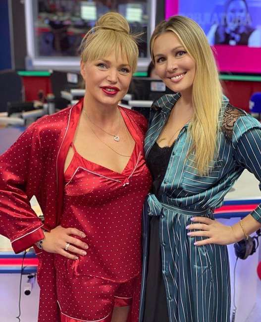 Алла Довлатова Ведущая «Русского радио» Алла Довлатова — женщина без возраста. В 2017 году она родила четвертого ребенка и почти сразу вернулась в прекрасную дородовую форму. Звезда без проблем демонстрирует свои фотографии в бикини, чем восхищает сверстниц заниматься собой и наслаждаться жизнью. Алла Довлатова и Мария Кожевникова На днях в гости к Алле пришла коллега, актриса Мария Кожевникова. Поводом встречи стал международный день лени, в честь которого звезды устроили настоящую пижамную вечеринку. Довлатова облачилась в спальный комплект красного цвета, состоящий из шортиков, майки и халата красного цвета. Дополнили образ собранные в высокий пучок волосы и красная помада в тон. Алла Довлатова и Мария Кожевникова Мария Кожевникова выглядела скромнее, ее пижама уступала по дерзости комплекту Аллы. Фанаты заметили, что радиоведущая помолодела и расцветает на глазах. Возможно, все дело в прическе, которую выбрала Довлатова, она сделала образ игривым. Также очень идет звезде красный цвет, уверены многие, и с этим действительно сложно поспорить.