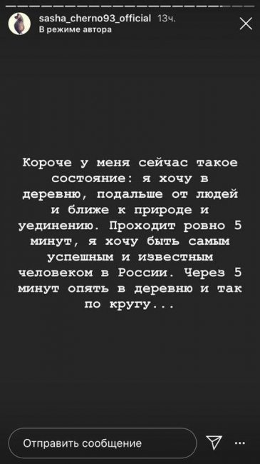 Недавно она рассказала, что страдает от постоянных перепадов настроения. Саша была уверена, что это состояние пройдет сразу после родов, но ее ждало разочарование. Она то в восторге от новой роли, то страдает от апатии и депрессии. При этом участница «Дома-2» не может определиться и с тем, каким хочет видеть свое будущее. Она то мечтает покинуть мегаполис и жить в деревне, то жаждет покорять карьерные вершины и добиваться успеха в столице.