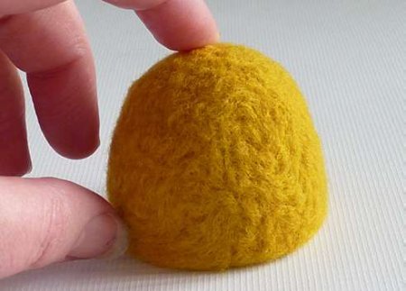 2. Продолжайте валять, формируя голову овальной формы, размером со средний мандарин (около 7 см в ширину и 5 см в высоту). Когда деталь станет достаточно плотной, но не совсем, пора приваливать ушки.
