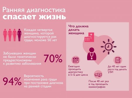 Модный check up, или по-русски диспансеризация, может спасти вам жизнь. По статистике, каждая седьмая россиянка столкнется с диагнозом рак груди в течение жизни, но шанс успешно пройти лечение увеличивается до 94%, если болезнь обнаружена на ранней стадии. В октябре по всей России проходит масштабная социальная акция против рака груди