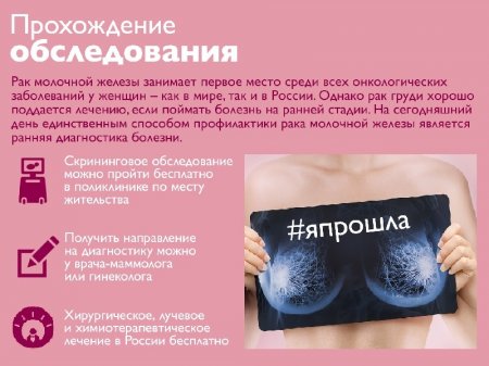 (Не стоит бояться лучевой нагрузки при прохождении маммографии. В современных маммографах используются инновационные технологии, которые позволили минимизировать облучение. Сегодня обследование можно сравнить с трехчасовым перелетом, например, Москва-Омск).