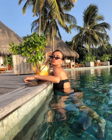 Певица Елена Темникова продолжает делиться красочными снимками из отпуска, который артистка вместе с супругом проводит на Мальдивах. К слову, там же уже успели насладиться солнцем и яркими красками Ирина Дубцова и Полина Гагарина. На новой фотографии Елена Темникова позирует в бассейне, вытянув губы «уточкой». Снимок, по всей видимости, делает ее супруг Дмитрий. Если ранее поклонники артистки переживали, что и без того стройная Темникова в отпуске еще больше похудела, то на этой фотографии из-за оптического обмана ее ноги показались очень массивными. Сама Лена с присущим ей чувством юмора подписала публикацию в Инстаграме: «ноги-базуки». Комментаторы подхватили ее шутливый настрой.