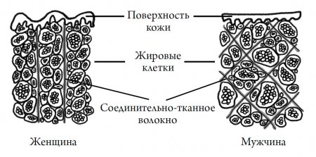 И у мужчин, разумеется, тоже есть подкожные жировые ткани. Но там волокна расположены не только вертикально. Мужикам посчастливилось иметь текстуру с диагонально и поперечно проходящими волокнами. Жировой слой пронизывает обширная сеть продольных и поперечных волокон, они плотно удерживают ткань и позволяют даже полноватому мужчине выглядеть подтянутым.