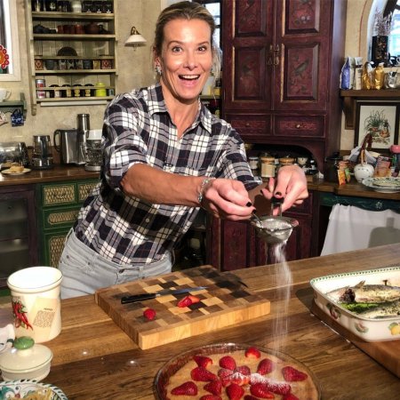 Вот и сейчас, в первой половине апреля, Юлия представила на суд новое блюдо, в котором использовала ягоды клубники, которые, к восторгу Высоцкой, были отменного качества.«Доброе утро! С утра пораньше вешаю на уши не только лапшу, но и клубнику! Первый рецепт сегодняшней съемки – тарт без муки, на миндале с клубникой, а клубника уже пахучая» – отметила телеведущая, не удержавшись и начав баловаться с продуктом, делая из клубники яркие серьги.