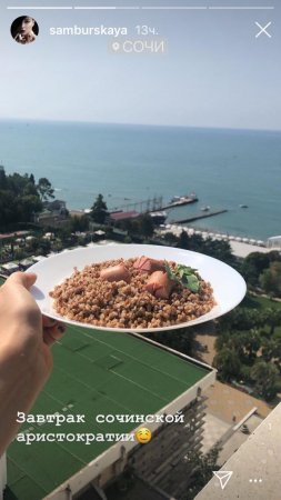«Завтрак сочинской аристократии», — подписала снимок тарелки Настасья, которая, судя по всему, осталась довольна блюдом.