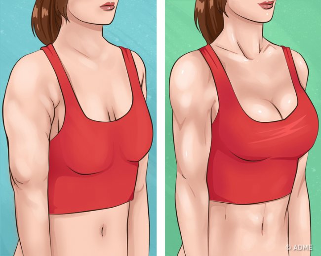 Французская телеведущая и автор бестселлера «Через 10 недель — моложе на 10 лет» Камилла Волер разработала комплекс упражнений для красивой груди, который пользуется популярностью во всем мире. Для тренировок не требуется специальный инвентарь, поэтому приступить можно сразу после прочтения статьи.Женская половина редакции AdMe.ru опробовала на себе все эти упражнения и предлагает вам включить их в свою ежедневную программу. 1. Упражнение «Ловец звезд» Данное упражнение играет роль разминки, оно исправляет осанку и укрепляет спину. Техника выполнения: Встаньте прямо, голову запрокиньте наверх. Поочередно вытягивайте то правую, то левую руку, зажимая их в кулак при каждом «захвате» звезды. 2. Упражнение «Слон» «Слон» помогает укрепить спину и шею, а также расслабить грудные мышцы. Техника выполнения: Расставьте ноги по ширине плеч и наклоните корпус вперед. Контролируйте положение спины — она должна быть параллельной полу. Расслабьте и опустите руки, после чего начинайте размахивать ими вправо-влево, двигаясь при этом назад. Голова должна повторять движение рук. 3. Упражнение «Кобра» «Кобра» воздействует на всю верхнюю часть туловища. Поначалу нетренированному человеку трудно выполнять это упражнение, но со временем будет гораздо легче. Техника выполнения: Лягте на живот. Положите руки на затылок. Оторвите грудь от пола и поднимите голову. Старайтесь выдвинуть локти вперед, поднимая при этом голову. Ноги необходимо держать вместе. 4. Упражнение «Теннисный мяч» Упражнение помогает добиться особо стойкого укрепления мышц груди. Его же называют одним из главных элементов комплекса. Техника выполнения: Встаньте прямо, слегка расставив ноги. Возьмите в руки теннисный мяч и поместите его в ладонях на уровне груди. Далее сжимайте и разжимайте его, направляя локти от себя и возвращая их в исходное положение. 5. Упражнение «Книга» Выполняется для подтягивания груди и укрепления мышц спины. Техника выполнения: Встаньте прямо и вытяните руки вперед ладонями вверх. Возьмите в руки по толстой книге / гантели. Разведите руки в стороны, затем сведите их вперед. 6. Упражнение «Ножницы» «Ножницы» помогают растянуть грудные мышцы и исправить осанку. Техника выполнения: Встаньте прямо, расслабьте плечи. Расставьте руки в стороны ладонями вниз. Вытяните их впереди себя и ритмично скрещивайте то правую руку над левой, то левую над правой. 7. Упражнение «Альбатрос» Данное упражнение выполняется для укрепления малых и больших грудных мышц. Техника выполнения: Встаньте прямо и слегка расставьте ноги. Вытяните руки параллельно полу, а ладони направьте вверх. Отведите руки назад, насколько это возможно, и вернитесь в исходное положение. 8. Упражнение «Подушка» Так же как и предыдущее упражнение, «Подушка» влияет на большие и малые грудные мышцы. Техника выполнения: Встаньте прямо, ноги поставьте вместе. Возьмите в руки подушку и ритмично сжимайте и разжимайте ее ладонями. 9. Упражнение «Колыбель» «Колыбель» помогает добиться укрепления опорных мышц груди. Техника выполнения: Встаньте прямо и скрестите руки перед грудью, поместив ладони на локти. Пытайтесь в таком положении поднять руки, создавая напряжение надавливанием ладонями на локти. 10. Упражнение «Подбородник» Упражнение укрепляет грудные мышцы и мышцы спины. Техника выполнения: Согните рук