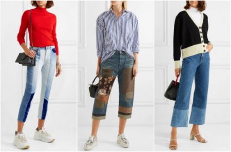 Интересная вещь о джинсах в стиле пэчворк заключается в том, что они выглядят как сшитые из разных видов джинсовой ткани. Обращает на себя внимание сочетание различных тканей, а также контрастных цветов. Особенно интересны джинсовые куртки типа пэчворк.