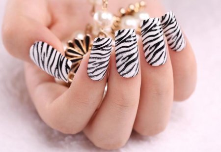 Учитывая, что в этом сезоне принты завладели модным подиумом, то не удивительно видеть их и на ногтях. Среди тенденций маникюра присутствует красочный животный принт, абстрактные формы и даже надписи.
