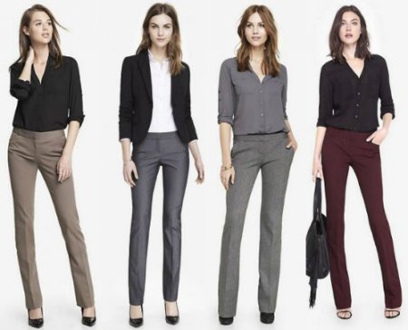 Официальные брюки, плотно облегающие бедра и икры, идеально подходят для невысоких женщин. Выберите модель с длиной чуть выше лодыжек и прямыми штанинами, потому что так вы сможете удлинить фигуру. Хорошо придерживаться темных цветов. Важно, чтобы официальные брюки не были слишком широкими, чтобы вы не выглядели еще ниже. По той же причине избегайте моделей со слишком широкими штанинами.