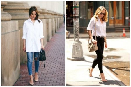 Одежда, которую можно носить, как и многую другую — это белая рубашка. Выберите классическую модель — из хлопка или хлопка/лайкры. Носите всегда слегка расклешенную блузку и заправленную в юбку/брюки, чтобы выглядеть выше.