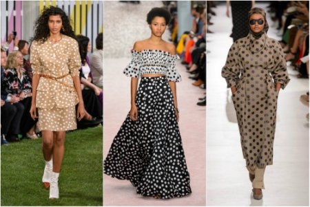 Модный горошек присутствует в коллекциях брендов Carolina Herrera, Celine, Chloe, Dolce&Gabbana, Escada, Marc Jacobs, Max Mara, Prada.