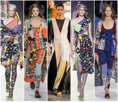 Пестрая модная картина весной/летом 2019 года дополнена моделями с пэчворк-элементами. С этой тенденцией дизайнеры побуждают нас быть более смелыми и дерзкими в создании индивидуального стиля, сочетая различные принты и цвета, не боясь экспериментировать.