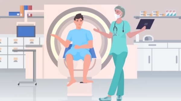 Процедура МРТ: Сотрудник клиники поможет устроиться на подвижном столе аппарата. Для уменьшения дискомфорта от шума, который издает аппаратура во время работы, пациенту предоставят наушники.