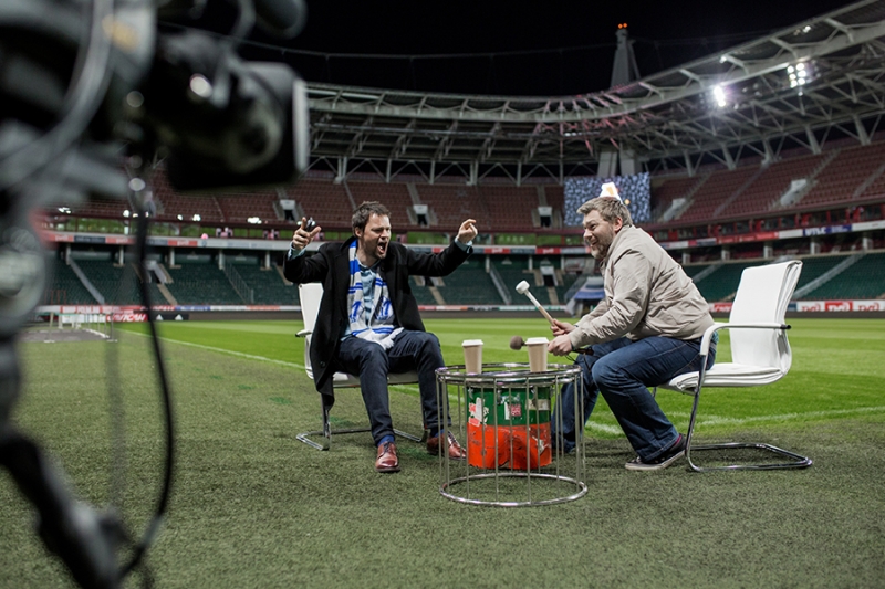 Возникла такая безумная идея. Дальше, конечно, надо было как-то договориться с руководством «Челси». Кто руководит «Челси»? Роман Аркадьевич Абрамович. Ты пытаешься долгое время выйти на Романа Аркадьевича, приходишь к нему, рассказываешь идею, он по непонятным для тебя причинам ее поддерживает, помогает в организации сложнейших съемок на территории Англии. Даже не то что Англии, на территории Стэмфорд Бридж, который фактически в день матча принадлежит национальной премьер-лиге английской. Это самый дорогой чемпионат и самые дорогие трансляции, поэтому огромная служба безопасности и правовых, административных и юридических нюансов. Нам во всем этом помогает клуб и Роман Аркадьевич, и директор клуба Марина Грановская. Они не знают слова «нет». Поэтому мы сняли очень важный для нас эпизод, совершенно беспрецедентный, потому что там до нас никто художественное кино не снимал.