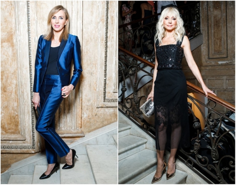 Светлана Бондарчук и Кристина ОрбакайтеВ свою очередь 46-летняя Кристина Орбакайте надела нежное черное платье с полупрозрачным подолом и топом, расшитым пайетками. Образ певица дополнила туфлями цвета металлик.