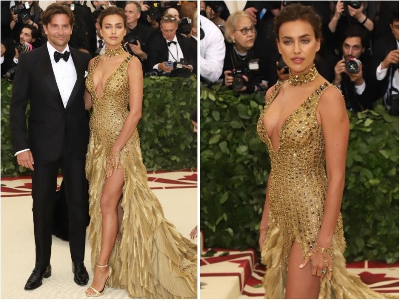 Сара Джессика ПаркерПоявление Ирины Шейк вместе с Брэдли Купером уже само по себе событие. Они хоть и не скрывают свои отношения, но все равно на светские мероприятия крайне редко приходят вместе. А на для Met Gala Ирина еще и перевоплотилась в настоящую диву. Расшитый камнями золотой чокер, шлейф как будто из перьев, но на самом деле из гофрированной ткани, глубокое декольте и расшитый камнями и стразами корсет платья — все эти детали можно разглядывать вечно.