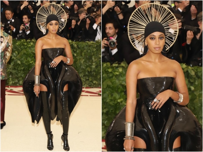 Эмилия КларкСестра Бейонсе Соланж Ноулз выбрала героиню из потустороннего мира и перевоплотилась в нее. Латексный объемный наряд несколько напоминал Малефисенту, но все же не был репликой в исполнении Iris Van Herpen.