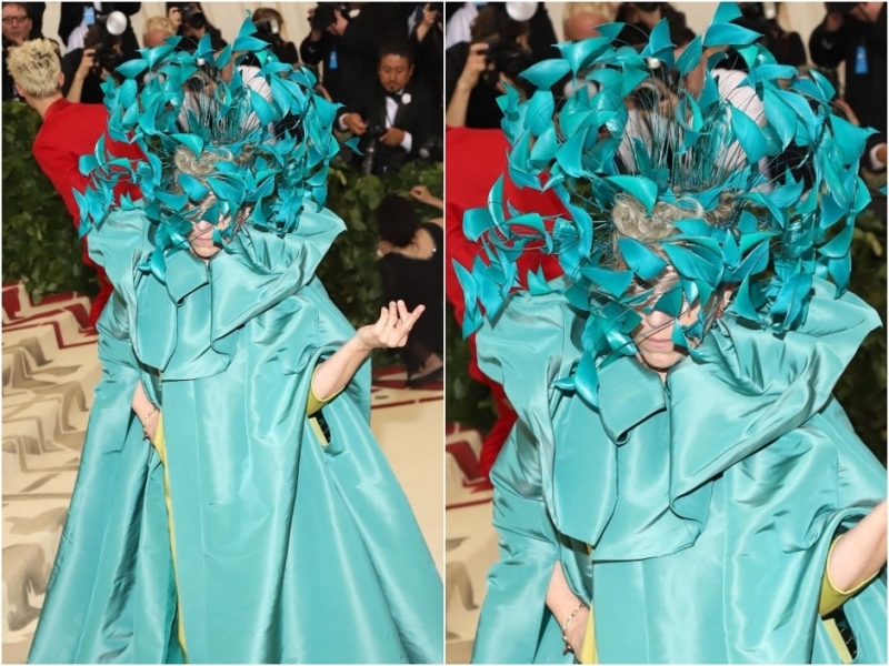 Белла ХадидФрэнсис Макдорманд бесподобна! Обладательница «Оскара», одна из самых талантливых актрис современности, 60-летняя Фрэнсис еще и бунтарка. Даже в наряде на Met Gala это отражается. Хотите экстравагантного яркого образа? Получайте шар из листьев, окутывающий всю голову. Зато макияжем себя мучить не пришлось, ведь актриса его почти никогда не носит.