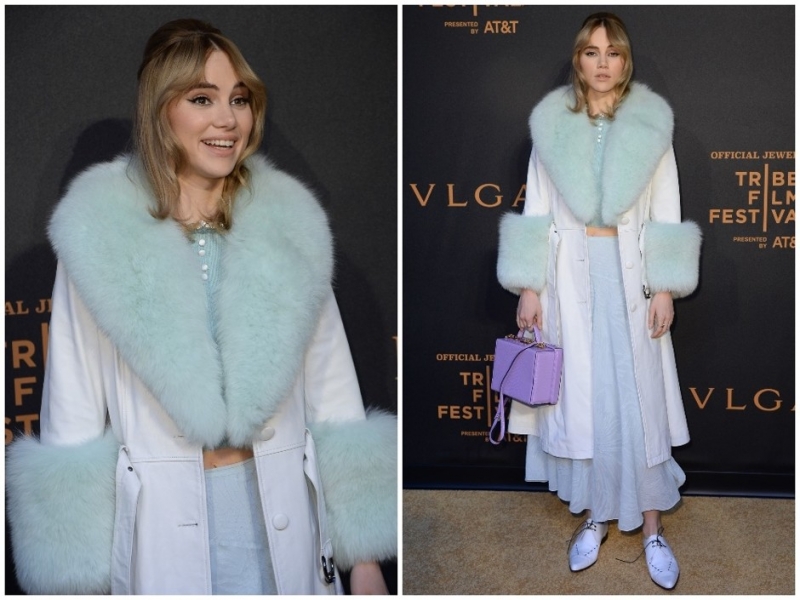 Блейк Лайвли на вечеринке Рианны (слева) и Пэрис Джексон на открытии магазина Longchamp в Нью-Йорке (справа)Кстати, о не по погоде жарких вещах. Хочется спасти из этого мехового плена актрису и модель Сьюки Уотерхаус. Хотя, кажется, она и сама оставила себе «глоток свежего воздуха» — окончательно не сойти с ума от духоты ей помогает небольшая полоска на животе, оставленная между топом и длинной юбкой. Ну и советуем все же Сьюки смотреть под ноги — с такими-то шнурками можно и навернуться.