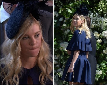 Бывшая девушка принца Гарри, Челси Дейви, прибыла на свадьбу в чернильно-синем платье и шляпке в тон. Наряд выглядел мрачновато, а фото лица девушки с церемонии венчания стали мемом.