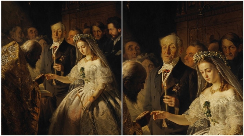 Василий Пукирев «Неравный брак»Картина «Неравный брак» считается одной из самых эмоциональных и трагических в истории русской живописи. Пукирев взял за основу довольно частый в XIX веке сюжет, когда совсем юную девушку выдают замуж за человека гораздо старше ее. Здесь нет любви, здесь пахнет только будущими страданиями и нынешним отчаянием. Невесту художник изображает мягким и невинным созданием, ее юность только-только началась, но ей суждено провести лучшие годы своей жизни с увядающим стариком. На полотне нет ни одного счастливого лица, даже зрителю обстановка кажется душной, фальшивой, жестокой. И только самое черствое сердце не проникнется сочувствием к бедной девушке. Проверить, насколько вас трогают такие истории, можно в Третьяковской галерее, где хранится «Неравный брак».
