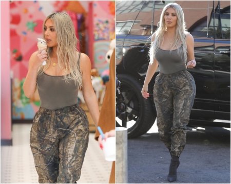 Ким Кардашьян в брюках с "украденным" принтомКамуфляж, казалось бы, используют в своем дизайне многие, но вот эта компания придумала свой вариант и закрепила права на использование за собой. Ким Кардашьян тоже по достоинству оценила принт и с удовольствием продемонстрировала, как его носить.
