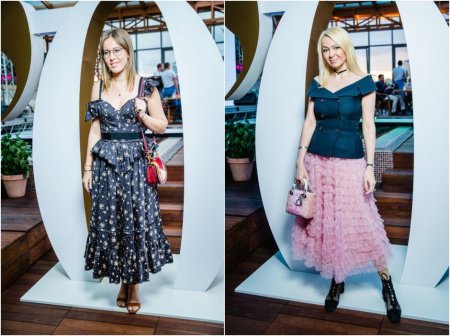 Для мероприятия 36-летняя Собчак выбрала платье с рюшами от российского дизайнера Ульяны Сергеенко, а 43-летняя Рудковская предпочла образ от Dior.