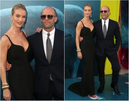 51-летний Джейсон Стэйтем снялся в новом фильме «Мег: Монстр глубины», премьера которого накануне прошла в Голливуде. На ковровой дорожке актер появился вместе со своей очаровательной возлюбленной — 31-летней моделью Роузи Хантингтон-Уайтли. Пара позировала в обнимку и одаривала поклонников воздушными поцелуями. Джейсон и Роузи выглядели в тот вечер как агенты под прикрытием. На модели было роскошное платье в пол с глубоким декольте, а на актере — строгий костюм синего цвета, белая рубашка и галстук. Свой образ Стэйтем традиционно дополнил солнцезащитными очками. Напомним, Джейсон Стэйтем и Роузи Хантингтон-Уайтли вместе с 2010 года. В 2016-м влюбленные обручились, в 2017 году у них родился сын. В сентябре 2017-го поклонники Роузи и Джейсона пришли к выводу, что пара сыграла свадьбу — всему «виной» стало кольцо на безымянном пальце модели, которое сильно походило на обручальное. Больше фото Джейсона и Роузи смотри в галерее.
