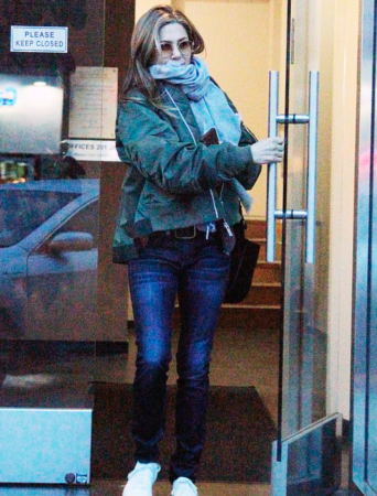Но каникулы подходят к концу, и Дженнифер вернулась в Лос-Анджелес. Сегодня папарацци подловили ее на выходе от косметолога. И хоть Энистон пряталась за шарфом, мы разглядели: она прекрасно выглядит!