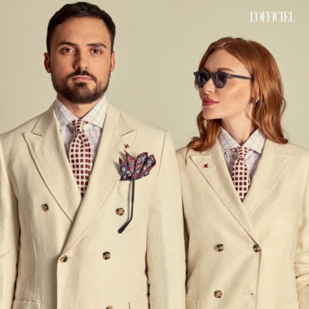 На снимке влюбленные позируют в одинаковых нарядах перед объективом украинского фотографа Сергея Васильева. В качестве стилиста выступила Аня Гончарова. Именно она одела звездную пару в бежевый total look.