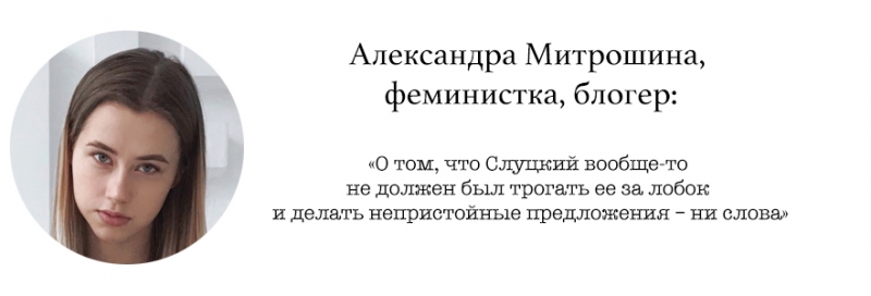 «Самое примечательное в истории с депутатом Слуцким — то, как институции встают на защиту пострадавших. Это и СМИ (например, «Секрет фирмы» теперь планирует упоминания Госдумы сопровождать пометкой «орган государственной власти, оправдывающий сексуальные домогательства»), и даже соцсети («Одноклассники» поддержали СМИ, выступившие в защиту, и помогут их аккаунтам в ОК с продвижением).