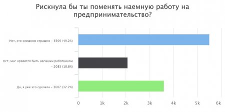 По мнению 49,2% опрошенных, они не рискнули бы поменять наемную работу на предпринимательство.