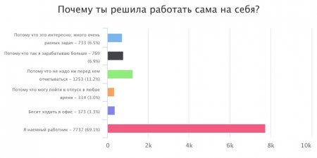 Несмотря на то что реальных предпринимательниц среди читательниц оказалось не так много, подавляющее большинство проголосовавших тем не менее считают, что лучше все же работать на саму себя.