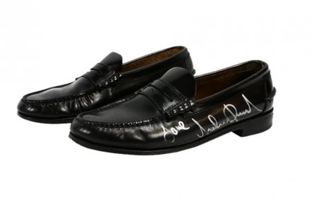 Туфли из мягкой черной кожи для фирменной скользящей походки Джексона, которую пытались копировать многие звезды и фанаты певца, предварительно оценены в 10 тысяч долларов.