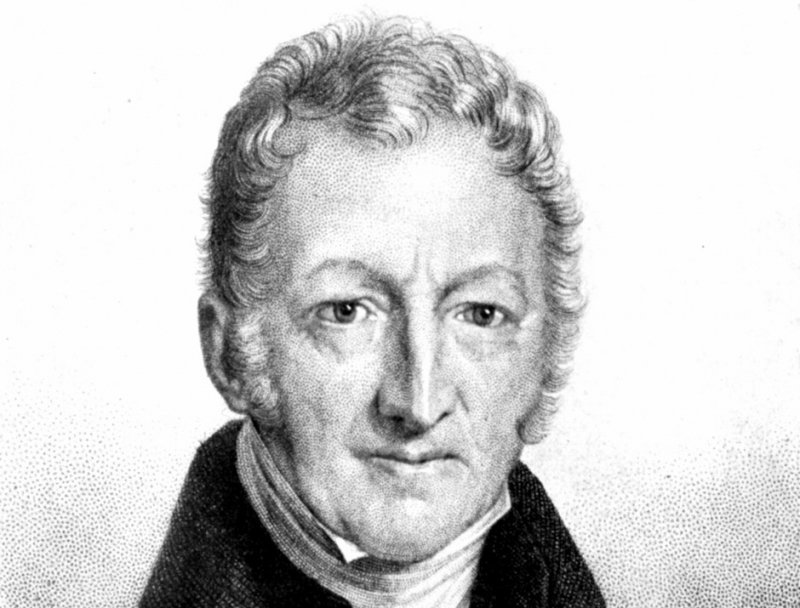 Как раз в это время возникают теории перенаселения. Известный британский мыслитель Томас Мальтус стал автором описания так называемой мальтузианской катастрофы. «Мальтузианская катастрофа» — это неконтролируемое увеличение роста населения до предела, когда земля уже не кормит и не может держать такое количество людей. Мальтус, будучи современником действительно взрывного роста рождаемости, связанного с британской индустриализацией, подсчитал, что, если такими темпами пойдет дело и дальше, то население будет увеличиваться, пока не начнет есть друг друга.