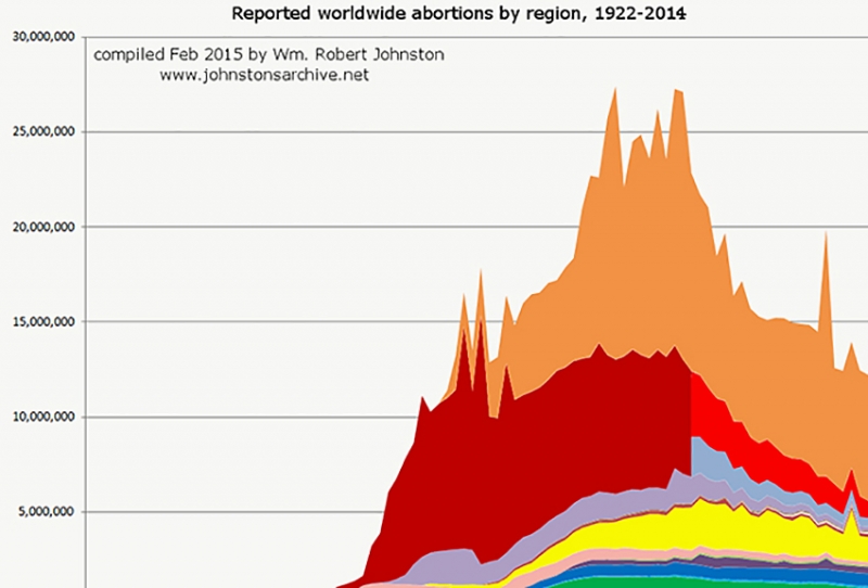 Вернемся к репродуктивному поведению. На графике видим, после страшных пиков XX века, снижение количества абортов благодаря контрацепции. Это произошло не из-за того что хорошо пропагандировали традиционные ценности или ограничивали права на аборт, а наоборот — во всем мире законодательство либерализовывалось в этом отношении. Мы видим высокое и достаточно последовательное снижение в 2005 году по сравнению с 2003-м, и в 2008 году по сравнению с 2005-м. Пик советской безнравственности — это 60-е — 70-е годы, причем как по абортам, так и по разводам.