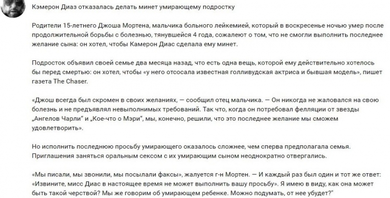 Представьте, что на месте парня — умирающая женщина, и ей напоследок хочется горячего мачо. Как думаете, привезли бы?
