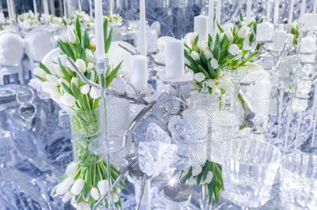 Используй преимущества текущего времени года и используй в декоре стола сезонные детали — имитация сосулек, кубики льда, снежинки.