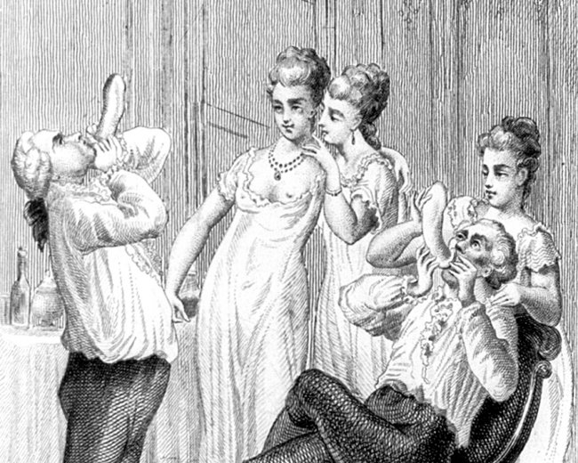 Джакомо Казанова проверяет свой презерватив на наличие дырок, раздувая его/WikimediaАристократы пользовались презервативами из кишок, льна и кожи до середины XIX века. Только после открытия в 1843—1844 годах вулканизации «сшивания» каучука и превращения его в резину, в обиход вошли резиновые презервативы.