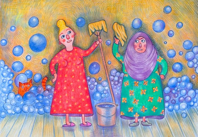 А вот, объясняет кузина, стуча кисточкой по стене, она как замуж вышла — утром встала полы мыть. И взяла швабру! И все. Человек тридцать лет — Ленивая Ума.