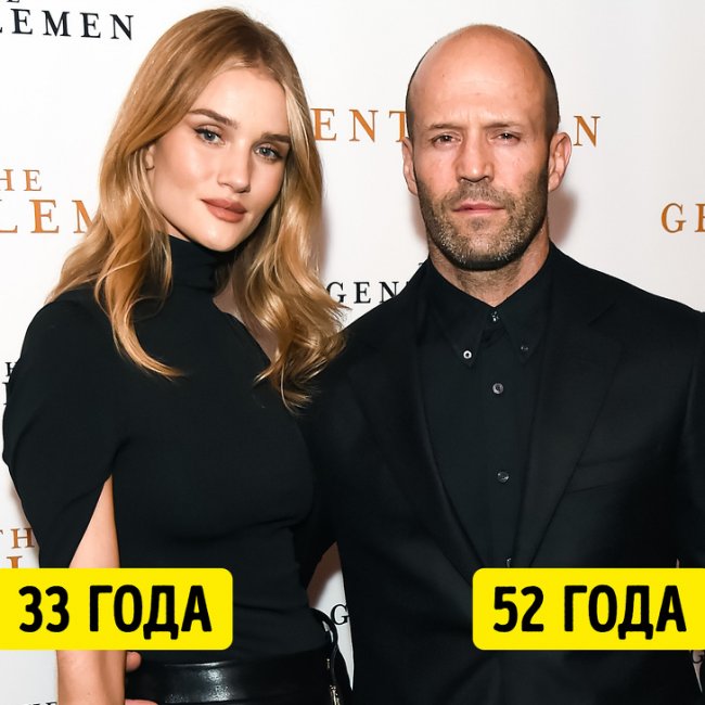 Несколько лет назад американские ученые провели исследование, в ходе которого выяснилось: идеальная разница в возрасте супругов составляет 1 год. По мнению специалистов, в этом случае вероятность развода минимальна — всего 3 %. Но любовь, как известно, побеждает все, и ей ничего не стоит опровергнуть все научные теории.Мы в AdMe.ru убеждены: если в паре кто-то намного старше, это вовсе не помеха для семейного счастья. А порой возраст влюбленных даже нельзя определить на глаз, и этому есть подтверждение среди знаменитостей. 1. Эльза Патаки и Крис Хемсворт Крис и Эльза познакомились, а потом и поженились, еще будучи неизвестными широкой публике. Как призналась Патаки, она влюбилась в голос Хемсворта, услышав его по телефону. Но даже придя к славе, супруги сумели сберечь свои чувства и часто радуют поклонников теплыми семейными фото. 2. Жерар Пике и Шакира История любви колумбийской певицы и испанского футболиста началась в 2010 году перед чемпионатом мира по футболу в ЮАР. Тогда Шакира исполняла песню «Waka Waka», а Жерар вместе с другими игроками снимался в клипе. Как она призналась позже, Пике сказал: «Я собираюсь выиграть этот чемпионат, чтобы встретиться с тобой в финале». И он выиграл. 3. Райан Рейнольдс и Блейк Лайвли Райан и Блейк талантливо сыграли влюбленных на экране, снявшись в блокбастере «Зеленый фонарь». Позже между актерами вспыхнули настоящие чувства. В 2012 году состоялась тайная свадьба голливудской пары. 4. Камила Алвес и Мэттью Макконахи Голливудский актер и бразильская модель встретились в одном из ресторанов Лос-Анджелеса в 2006 году. В тот день Камила отмечала свой день рождения. Мэттью был покорен красотой этой великолепной девушки и, недолго думая, подошел познакомиться с ней. Сейчас у счастливой пары уже трое детей. 5. Амаль и Джордж Клуни Джордж и Амаль познакомились в довольно романтической обстановке — на озере Комо в компании общих друзей. Очень долго пара не афишировала свой роман, но в 2014 году влюбленные устроили пышное свадебное торжество и оказались на обложке журнала People. 6. Джей-Зи и Бейонсе Поначалу эту влиятельную чету связывали чисто дружеские отношения. Позже они переросли в плодотворное сотрудничество. Джей-Зи всего за несколько минут придумал песню «Crazy in Love», которая стала первым хитом Бейонсе. Но уже на церемонии вручения премии MTV в 2004 году они появились как пара, а 4 годами позже сыграли скромную свадьбу. 7. Джеки Эйнсли и Гай Ричи Известный режиссер и очаровательная модель впервые встретились на светском ужине у общих знакомых. В 2015 году счастливая пара сочеталась браком в поместье графства Уилтшир. Торжество было таким масштабным, что его сравнивали с церемонией вручения «Оскара». 8. Хилари и Алек Болдуин Алек и Хилари познакомились в 2011 году, случайно оказавшись за соседними столиками в кафе. Избранница актера работала инструктором по йоге в нью-йоркской студии. В тот вечер она ужинала с подругами. Узнав звезду, девушка незамедлительно решила подойти к Болдуину и выразить свое восхищение его талантом. На следующий год они поженились, а сейчас у пары уже трое детей. 9. Пенни Ланкастер-Стюарт и Род Стюарт Музыкант и модель, которая позже переквалифицировалась в фотографа, познакомились в далеком 1999 году и встречались до свадьбы долгих 8 лет. Сейчас у пары есть 2 сына. 10. Джефф Голдблюм и Эмили Ливингстон Голл