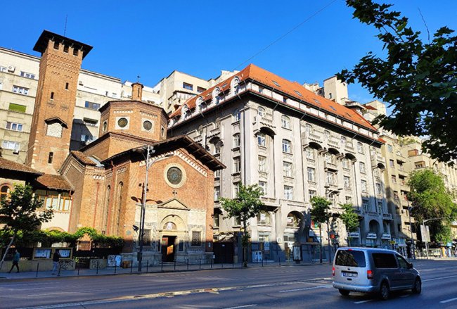 Бухарест. Итальянская церковь в стиле Ренессанса, правее — неороманское здание, еще правее — дом в стиле ар-деко на фоне модернистского жилого массива. Все эти здания построены в докоммунистический период.Фото: предоставлено героем материала