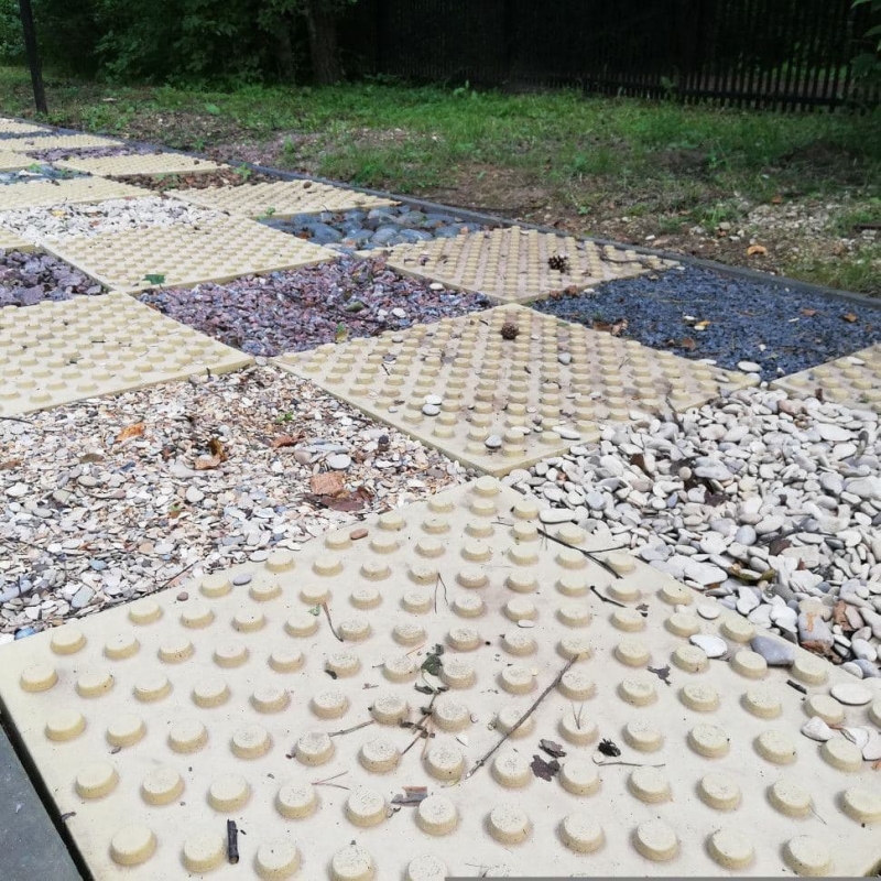Маршрут «Босоногой тропы» оснащен чередующимися тактильными покрытиями, положительно воздействующими на стопы и дающими полное ощущение погружения в мир чистой и дикой природы. Тропа покрыта песком, сосновой корой, морской галькой, керамзитом и шишками и ходить по ней надо босиком.